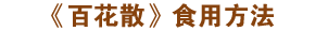 服法:每日四次(包括晚上睡覺前一次), 每次蜂蜜及《百花散》藥粉各一包調(diào)和,飯前一小時用適量溫開水沖服。