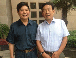 中國抗癌協(xié)會常務(wù)理事、河南省抗癌協(xié)會會長楊文獻(xiàn)教授和《百花散》傳人梅先生合影